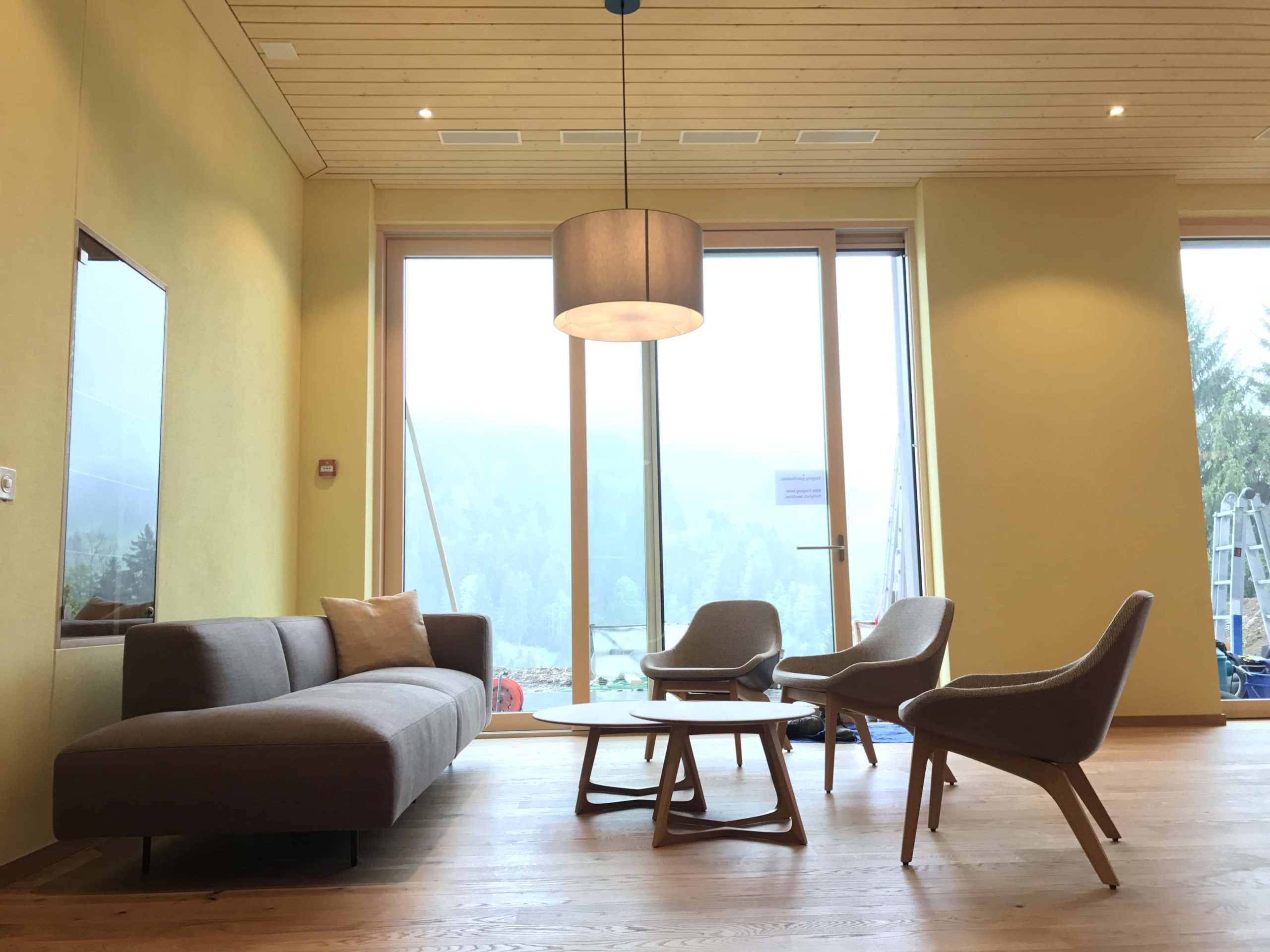 Die Möbel-Kollektionen, welche wir für die Ausstattung berücksichtigt haben, arbeiten denselben Vorstellungen wie wir, heisst: mit weitest möglicher nachhaltiger Materialisierung und das verarbeitet Holz FSC zertifiziert. Letzlich war das Konzept so ’simpel‘ wie aussergewöhnlich: fühle dich drinnen wie draussen, fühle dich draussen wie drinnen – auch im übertragenen Sinn !