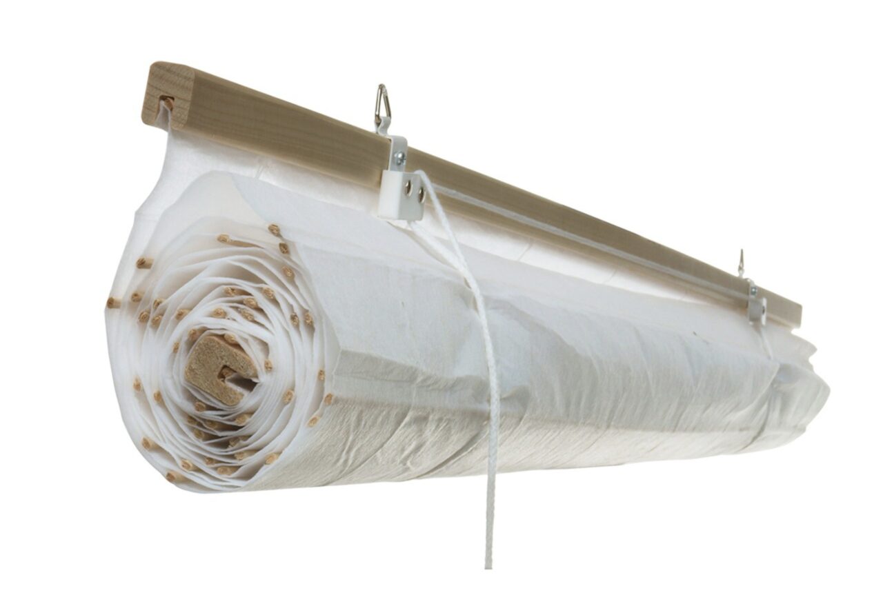 Mit dem Vlies-Rollo wachen Sie jeden Morgen auf wie in Japan. Es besteht aus einer feinen Bambusrippenkonstruktion, die mit einem, dem japanischen Reispapier nachempfundenem Vlies bespannt ist. Mit einer Zugschnur und einem einfach zu bedienenden Feststellmechanismus ausgestattet, lassen sich die Papierrollos in jeder Höhe leicht arretieren. Das leicht blickdichte Vlies rollt sich beim Hochziehen auf.